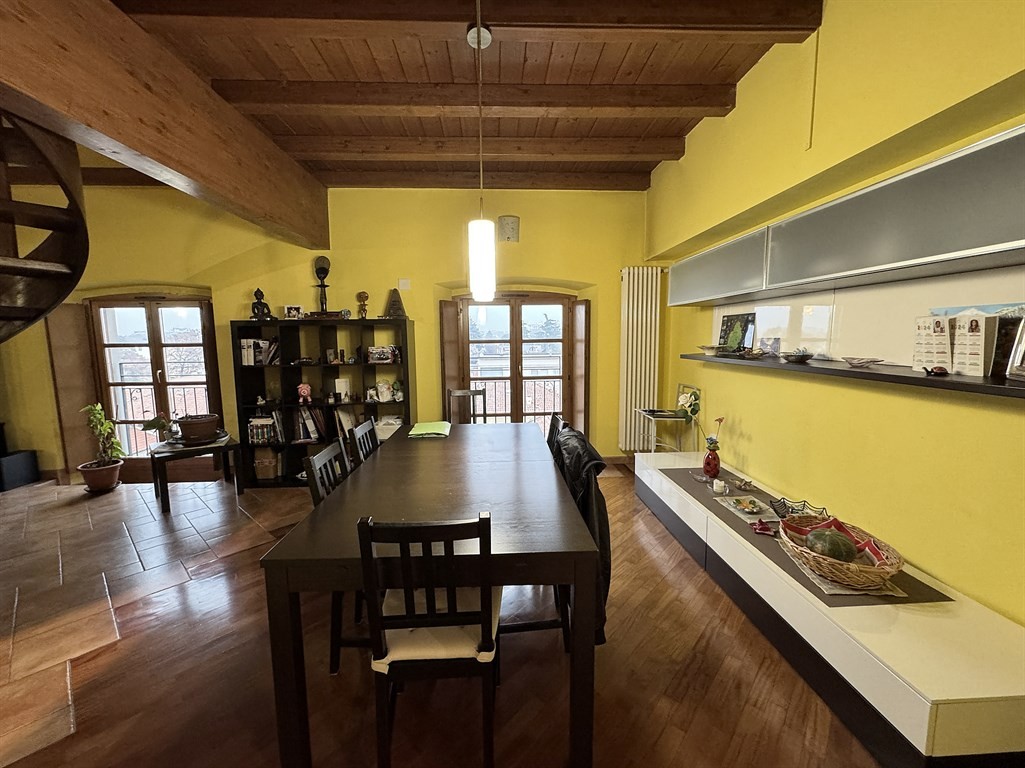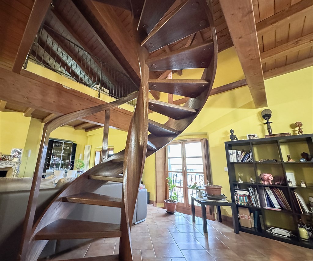 All’ultimo piano dell’elegante palazzo nobiliare dei conti Taccona a Muggiò, restaurata nel 2000 proponiamo ampio appartamento su 2 livelli; al piano terzo troviamo un’ampia zona giorno con cucina semi-vista, bagno, e sala relax (eventualmente trasformabile in studio- cameretta) ; una scenografica scala elicoidale conduce al piano mansardato in cui troviamo altri 2 locali ed un secondo servizio – lavanderia. Le finiture sono molto eleganti e valorizzano lo spirito dell’epoca del palazzo. Completano la proprietà 2 posti auto (inclusi nel prezzo) ed è possibile acquistare anche un ampio box di 18 mq al prezzo di € 18.000.