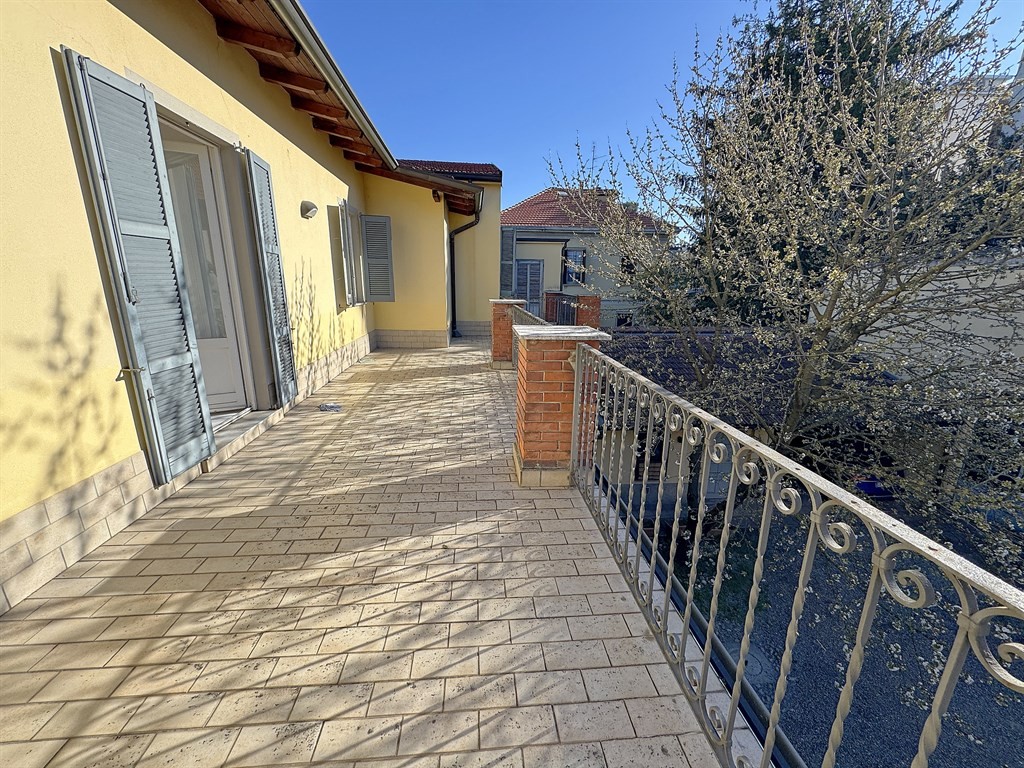 – residenza principale attualmente divisa in due unità abitative :piano terra 136 mq con ampio patio , primo piano 160 mq con grande terrazzo affacciato sul giardino, piano interrato cantina 61 mq